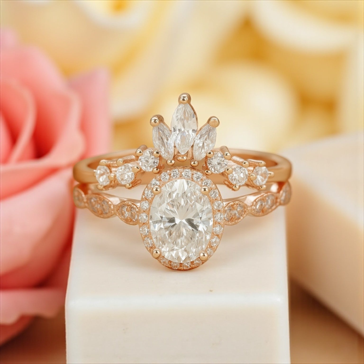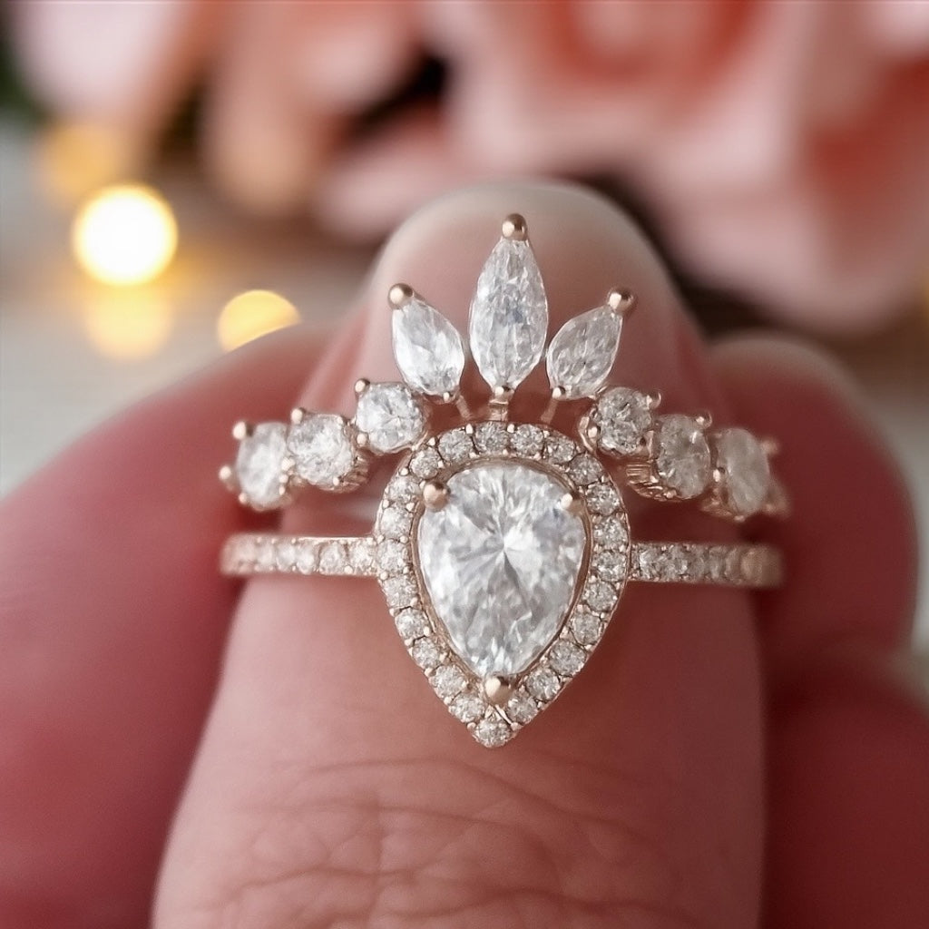 π€ Design: Crown-style contour band with alternating marquise and round stones