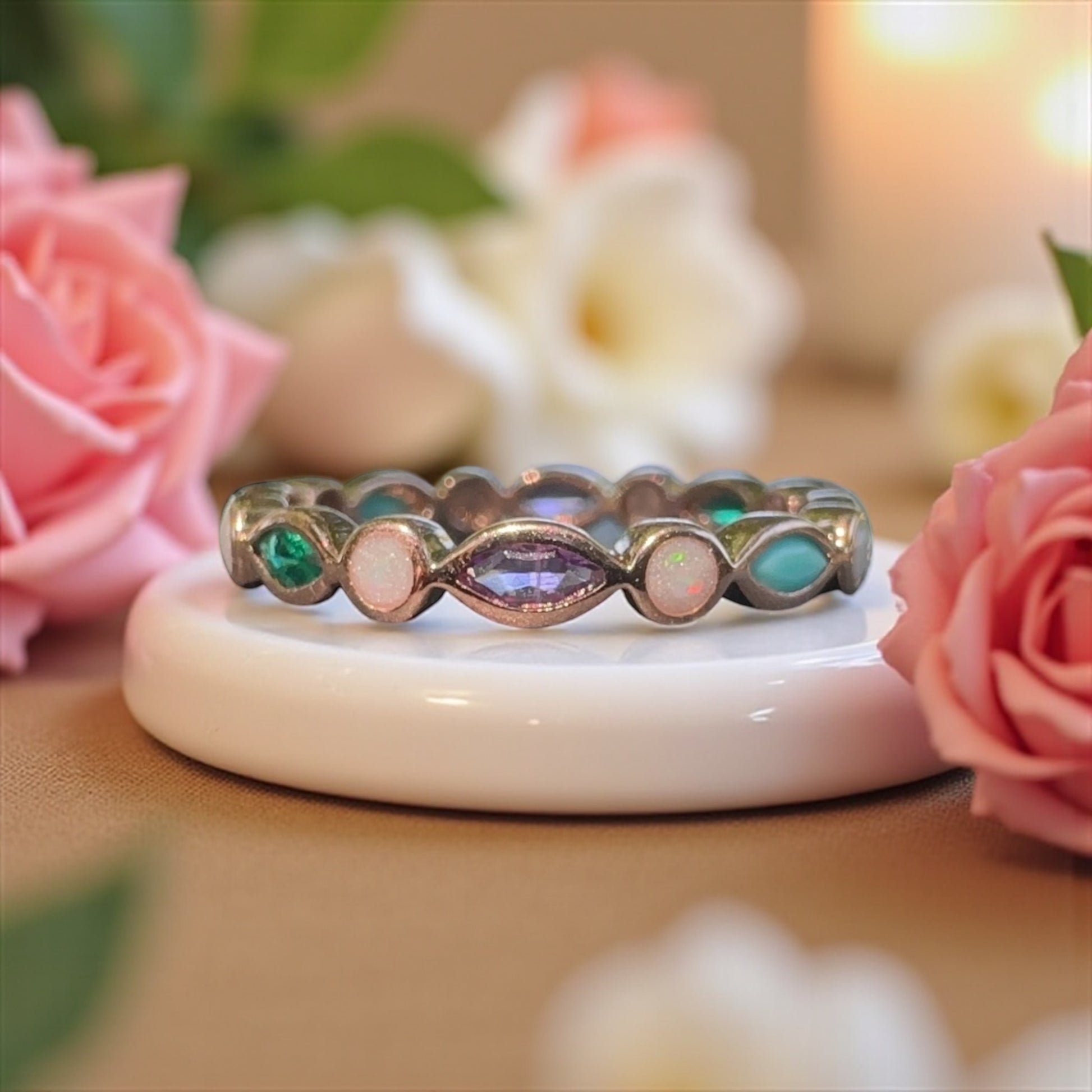 The Maren Band is a timeless design that captures the people, places, and moments closest to your heart- through brilliant birthstones and deeply personal inclusions. Each wave-like curve holds space for both sparkling birthstones and custom round keepsake stones, ideal for breastmilk & cremation ashes.