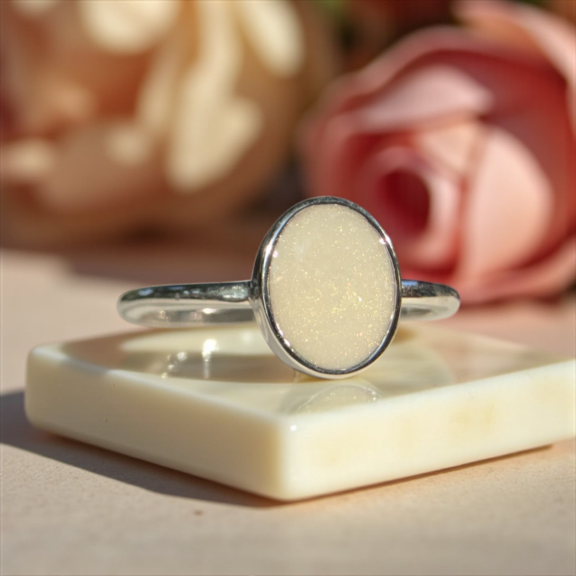 Every story of love, loss, and life is a miracle in its own way. The Miracle Ring was designed to honor those stories- whether it holds breastmilk from the early days of motherhood, ashes of a loved one, a lock of hair, or flower petals from a special moment.