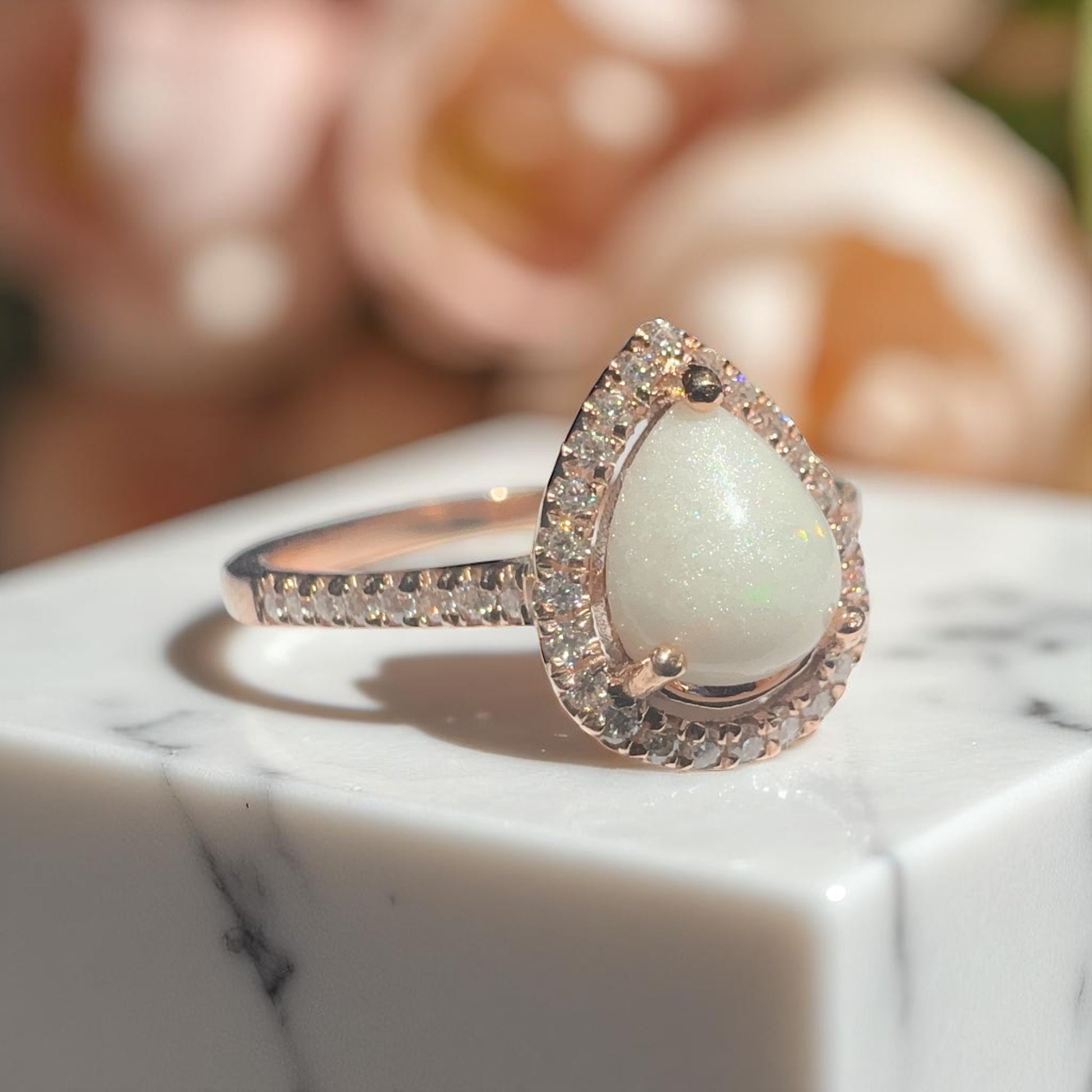 Remember the sweetest times with The Hope Ring, a beautifully crafted piece designed to hold your most treasured memories. Featuring a stunning 6x8mm pear-shaped keepsake stone surrounded by a sparkling halo and stones down the side of the band, this ring is the perfect symbol of love, strength, and remembrance.