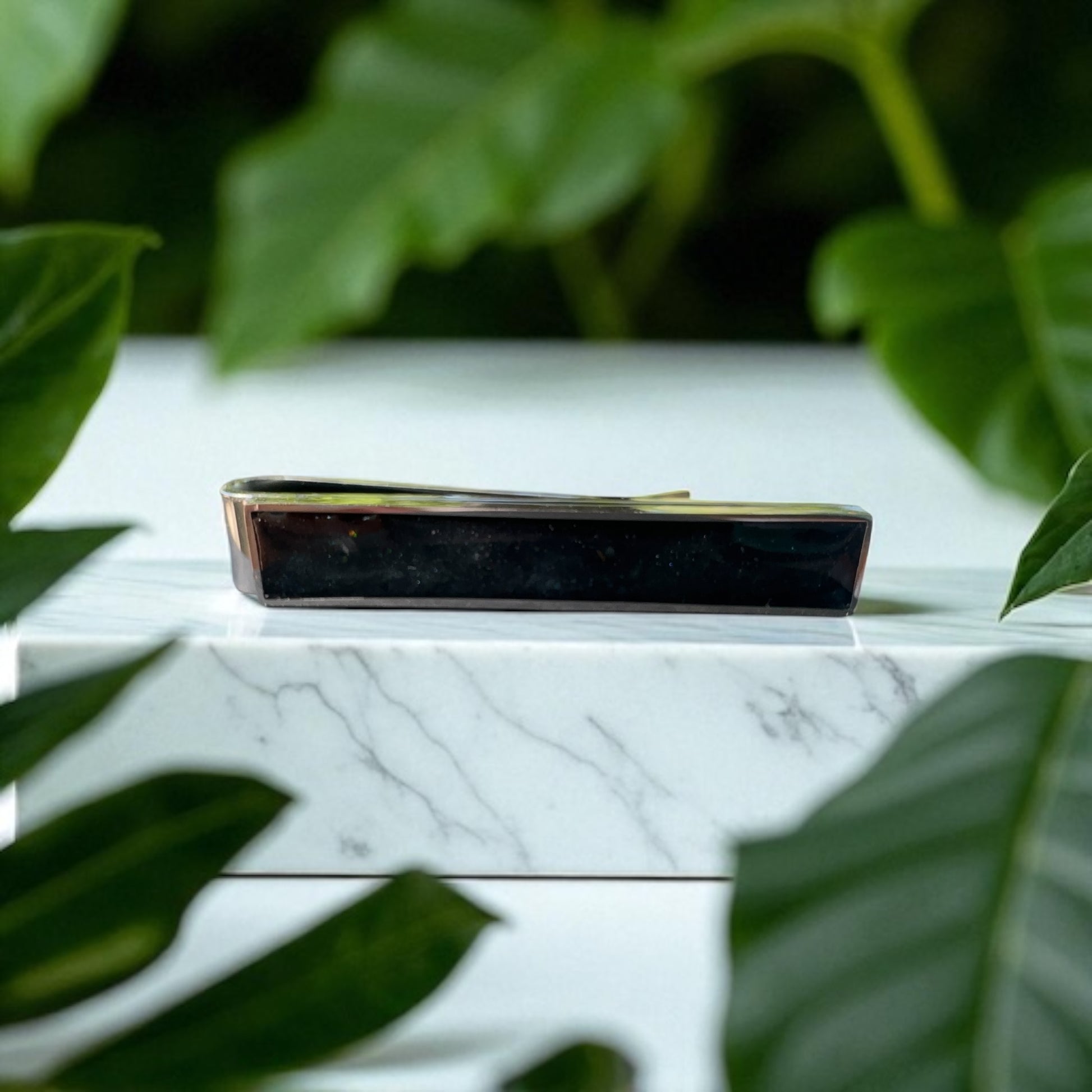 Meticulously handcrafted, this sleek keepsake tie bar can hold precious inclusions like cremation ashes, cherished fabric, breastmilk, sand from a special place, or any material that holds deep meaning for you. Its modern, masculine design pairs seamlessly with business attire or formalwear, offering a subtle yet powerful way to honor memories and moments.