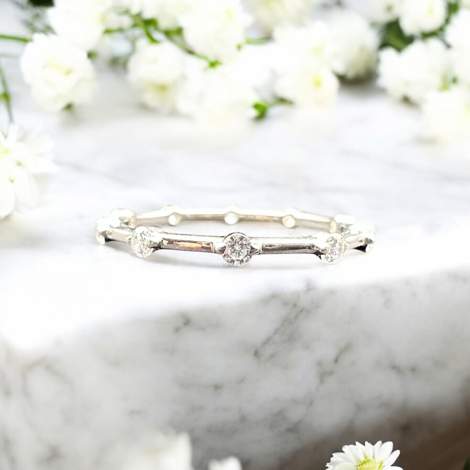 Named after my son, Truett’s Stacking Band features unique round simulated diamonds or Moissanite, designed for those who appreciate the beauty of simplicity. With its elegant, sparkling stones, this band is perfect for stacking and creating a personalized look.