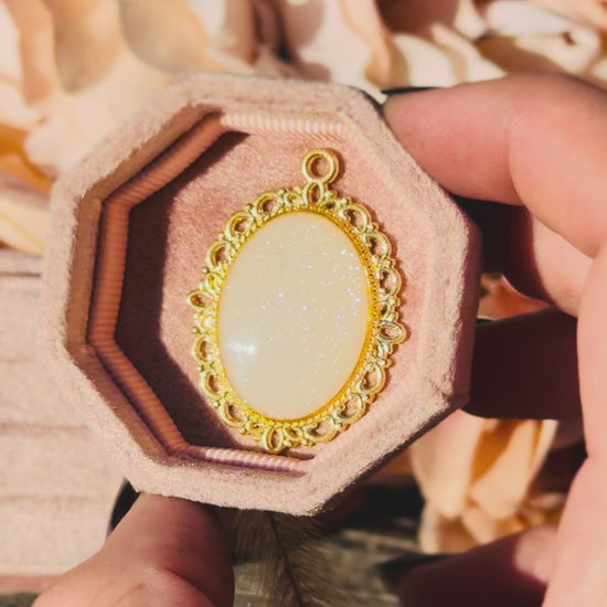 A 25Γ18mm keepsake ornament set in stainless steel (gold or silver). Handcrafted to hold breastmilk, ashes, hair, or shimmer blends. Available this weekend only π€Β
